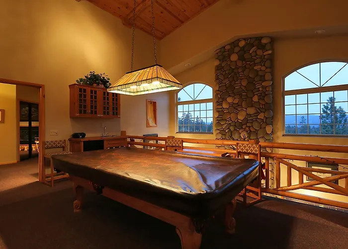 In der Umgebung befinden sich Einkaufsmöglichkeiten wie Moonridge Zoo (ist etwa 10 Minuten mit dem Auto von der Unterkunft entfernt). Snow Summit Chair 7 liegt in 15 Fußminuten Entfernung von der Villa und Ski Beach Park ist in 10 Minuten Autofahrt erreichbar.